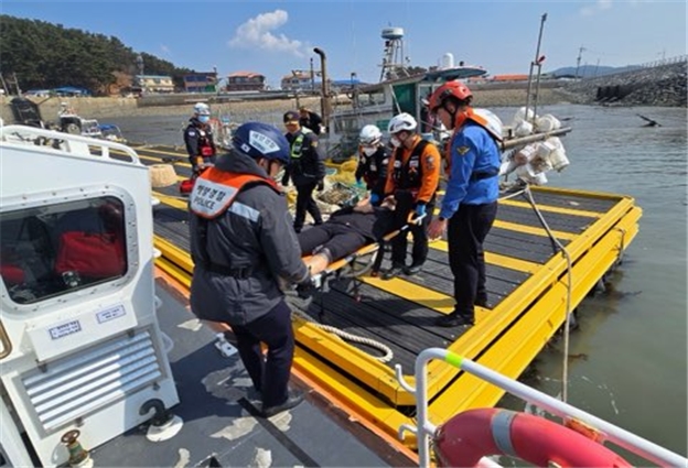 현장 도착 당시 환자 A씨는 무릎 통증을 호소하면서 거동이 어려웠지만, 학암포파출소 연안구조정을 통해 신속히 벌말항에 도착, 119구급대 응급처치 후 인근 병원으로 무사히 이송될 수 있었다.